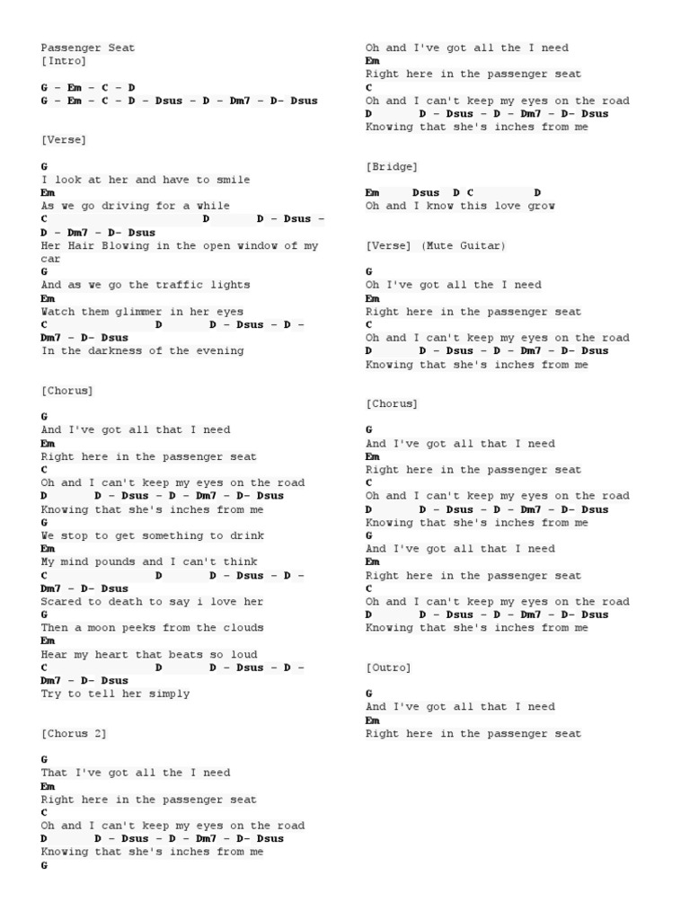 Passenger Seat Pdf Song Structure Songs